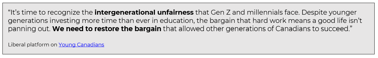The Liberal election platform recognizes that Canada no longer works for all generations. As Prime Minister Mark Carney’s new government appoints Ministers and sets out plans, solutions to this national challenge must be at the forefront of our efforts to protect, build, and unite Canada.