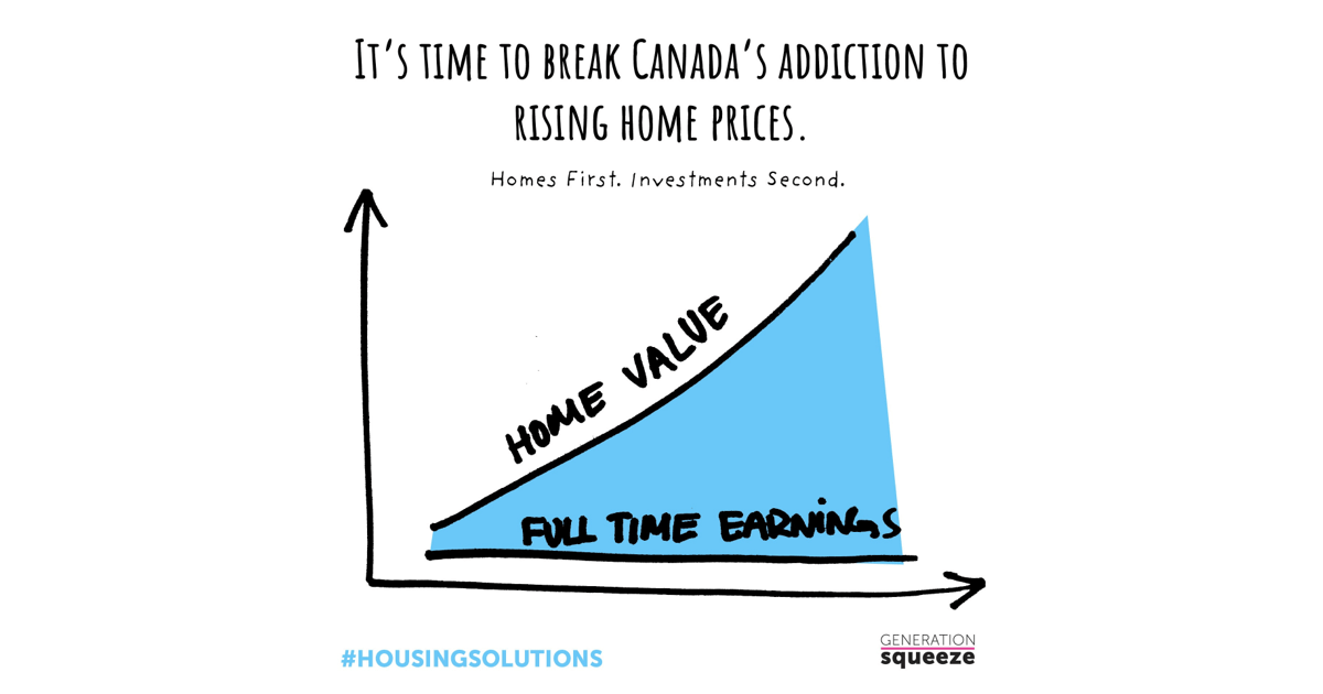 Generation Squeeze received funding from the National Housing Strategy's Solutions Labs Program, via the Canada Mortgage and Housing Corporation (CMHC)*, to take action on one of three pillars in our comprehensive housing solutions framework -- the need to break our country's Addiction to High and Rising Home Values.